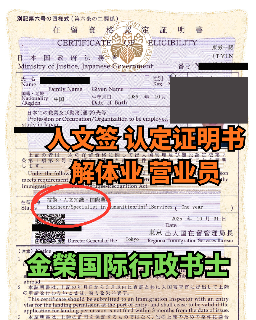 これらの徹底した立証活動により、「解体業の営業スタッフ」として専門性が認められ、「技術・人文知識・国際業務」の在留資格許可を得ることができました。